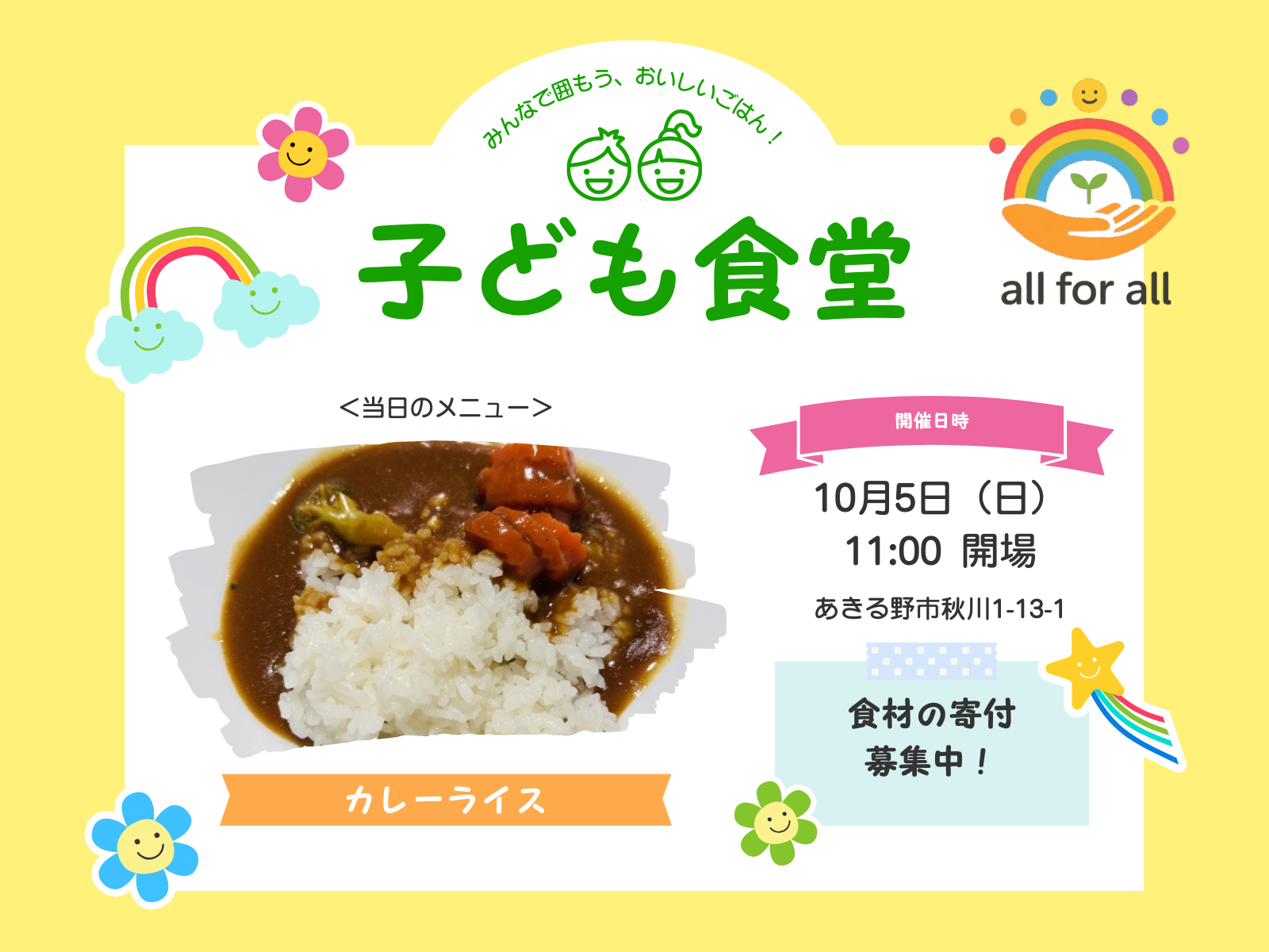 10/5(日) 11:00~!第1回「こども食堂 in あきる野」開催!